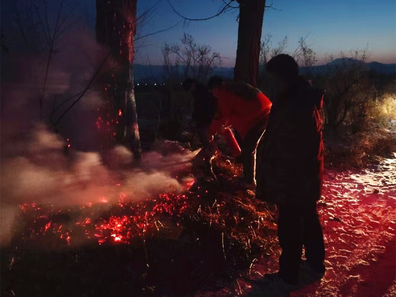 憑借項目部定期開展的安全培訓和應急演練積累的經驗,三人形成了默契的戰斗陣型:游二河操作滅火器對準火頭根部,白色干粉精準壓制火苗;劉倬偉配合村委會工作人員,用樹枝拍打邊緣余火;王軍德則沿著隔離帶反復巡查,將零星復燃的火星徹底澆滅。